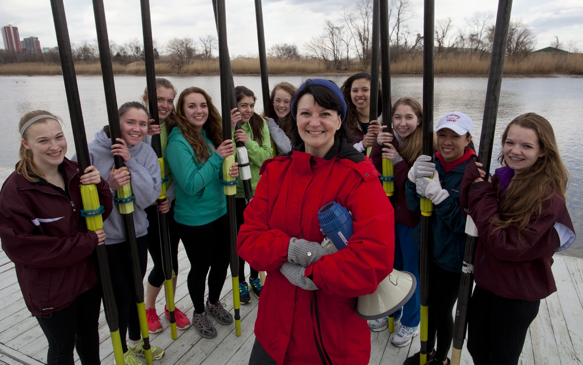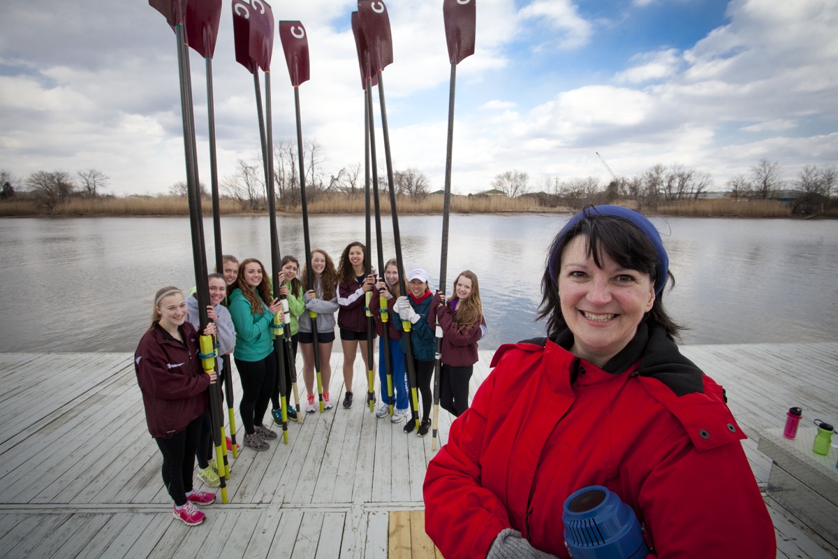 As a competitive rower herself, Marie started the co-ed crew team in 2002. The last two years she’s backed away partially from the team, hoping to allow others to take over the coaching reins. But she continues to stay involved as the program’s faculty adviser and the team’s most enthusiastic supporter.